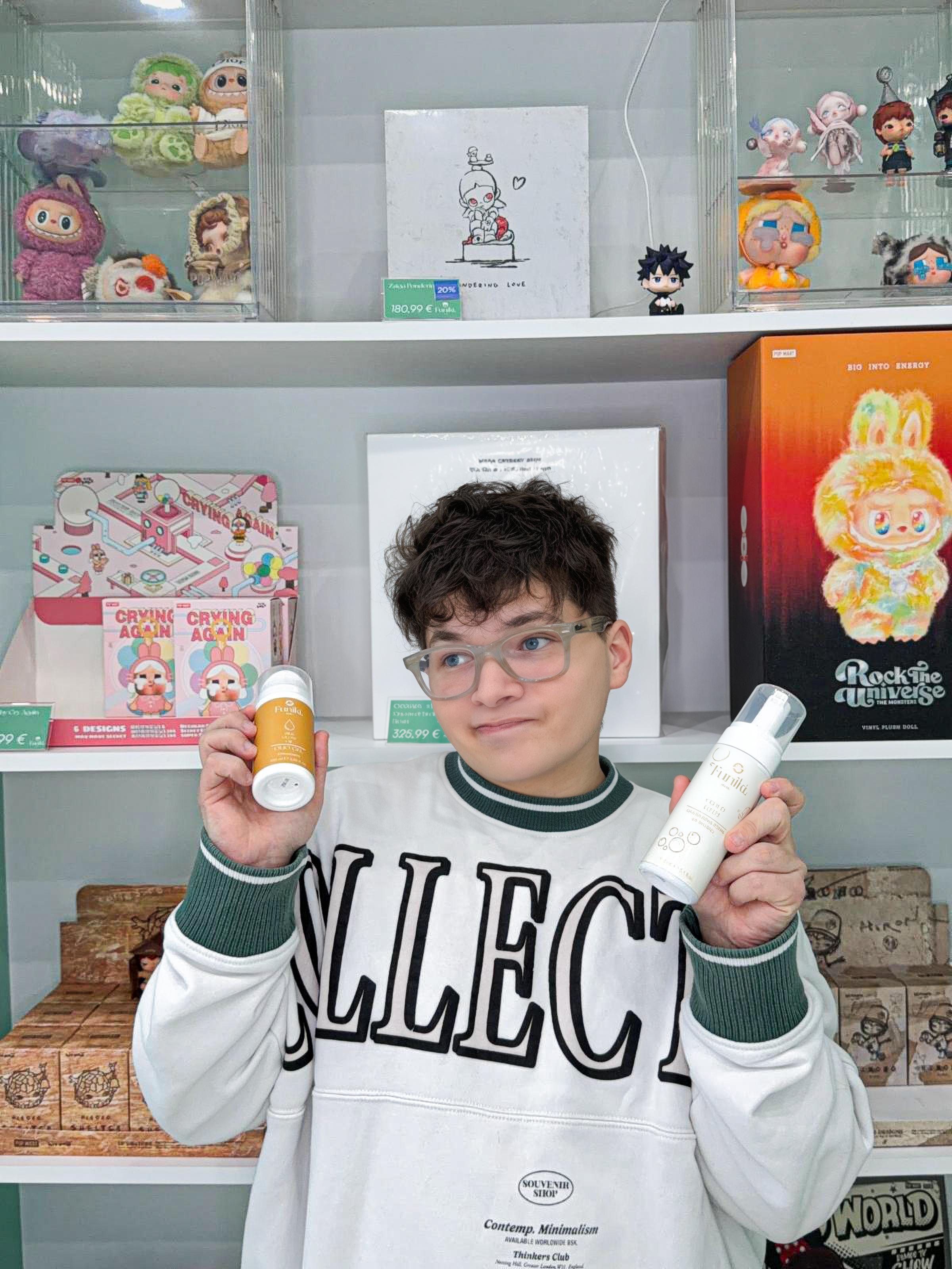 Con il tempo, il mio percorso di crescita si è intrecciato con un altro universo che lo ha sempre affascinato: quello della skincare coreana. Da questa seconda passione è nata Funiki Care & Beauty, la linea dedicata al benessere della pelle e ai rituali di cura coreani, selezionati con la stessa attenzione e dedizione che caratterizzano la scelta degli art toy.